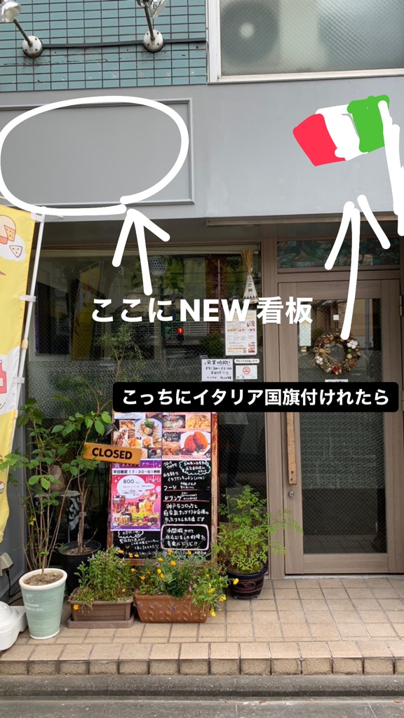 具体的には看板を東側と北側にふたつ設置することにしたのと、看板にイタリアの国旗をイラストにして載せることにしました。